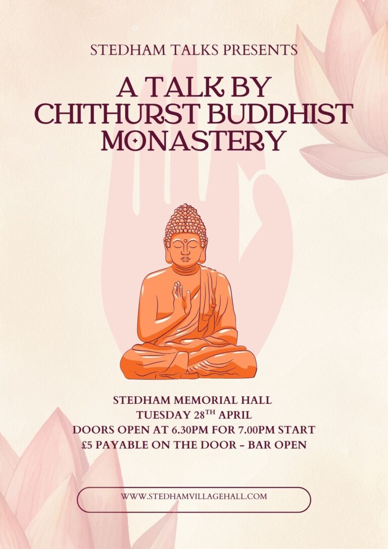 STEDHAM TALKS PRESENTS ‘A TALK BY THE CHITHURST BUDDHIST MONASTERY’ ON 28TH APRIL 2026 AT 7.00PM
