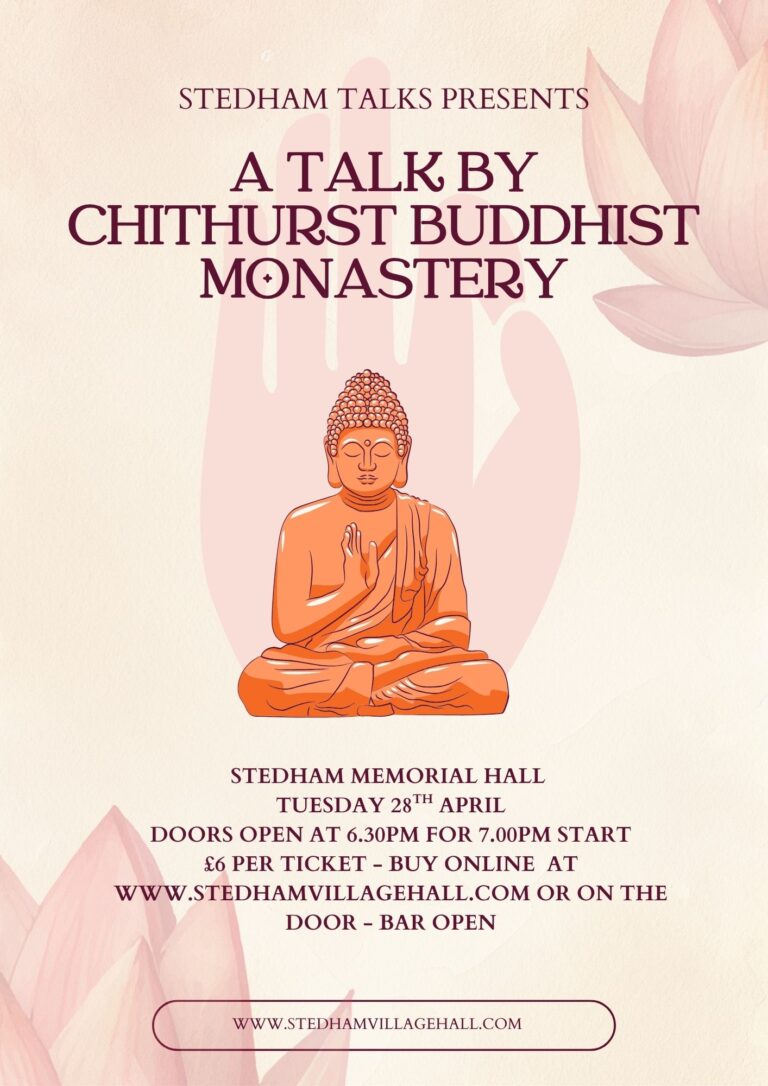 STEDHAM TALKS PRESENTS ‘A TALK BY THE CHITHURST BUDDHIST MONASTERY’ ON 28TH APRIL 2026 AT 7.00PM