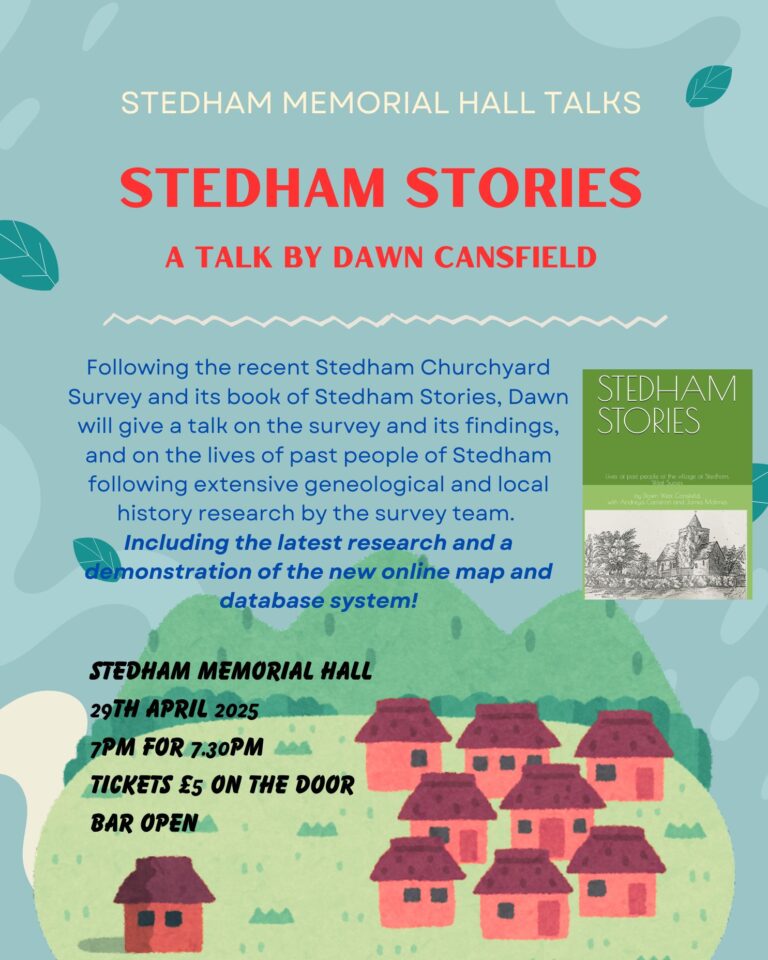 Stedham Stories Following the recent Stedham Churchyard Survey and its book of Stedham Stories, Dawn will give a talk on the survey and its findings,