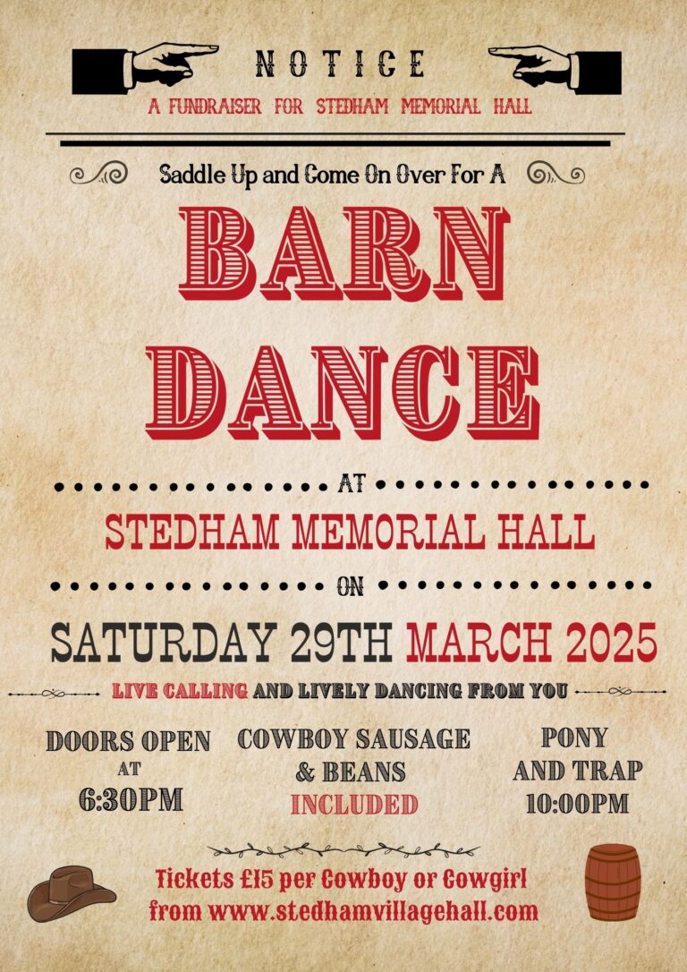 Come on Over for the Stedham Memorial Hall BARN DANCE SOLD OUT Saddle-Up and come on over for a Barn Dance / Ceilidh at the