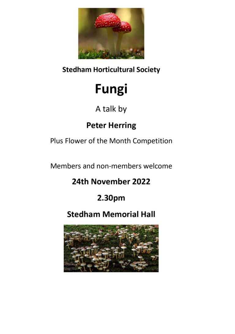FUNGI A talk by Peter Herring Members & non-members welcome Thursday 24th November 2.30pm