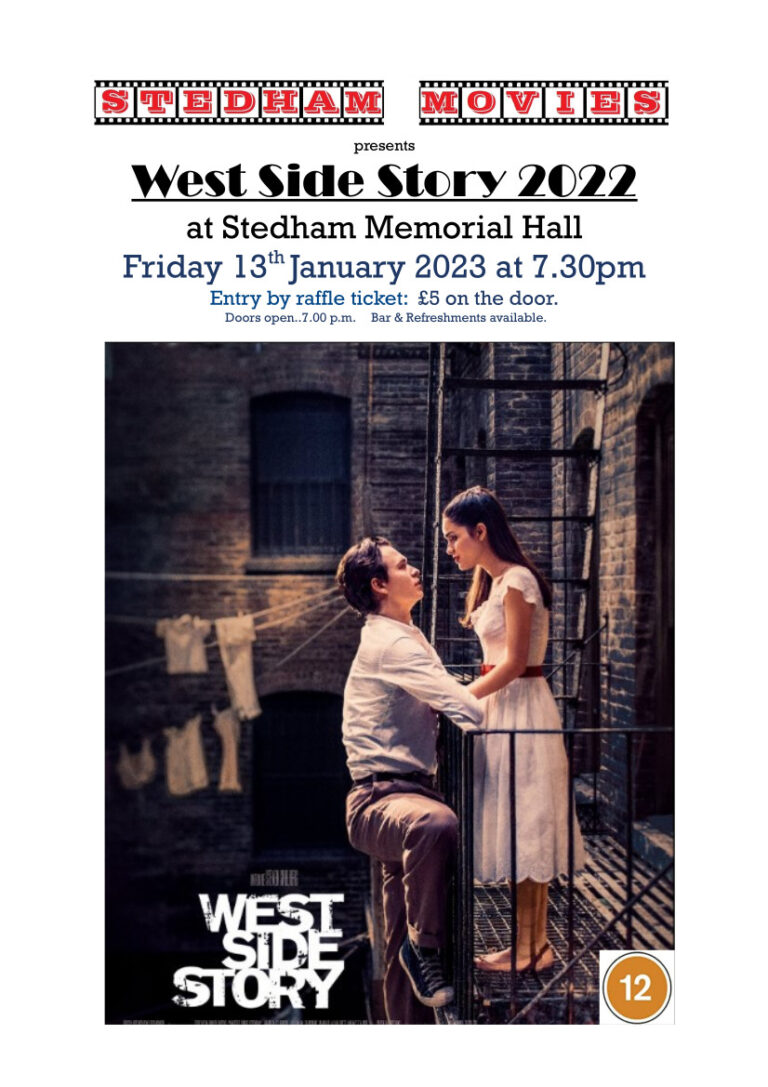 presents West Side Story 2022 on Friday 13th January Entrance £5 on the door. Bar & Refreshments. From producer and director Steven Spielberg, with a