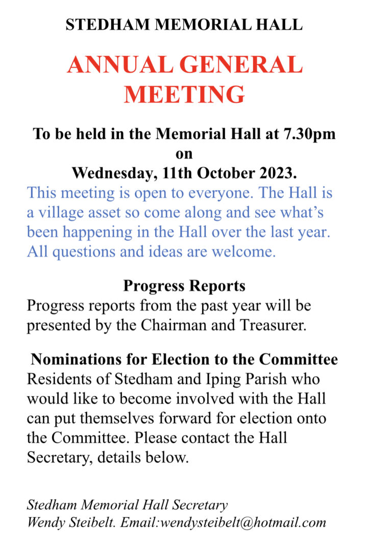 Wednesday 11th October 2023, 7.30pm This meeting is open to everyone. All questions and ideas are welcome. See attached image for details.